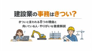 建設業の事務がきついと言われる理由を8つ解説。特殊な経理・安全書類・アナログ文化・男性中心の職場環境など、他業界の事務とは異なるリアルな実態を紹介しながら、やりがいや向いている人の特徴、キャリアアップの方法まで詳しくまとめました。