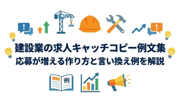 この記事では、建設業の求人で使えるキャッチコピー例に加えて、応募が増えるキャッチコピーの特徴、作り方の5ステップ、よくある言葉の言い換え方、媒体別の使い分けまで分かりやすく解説します。