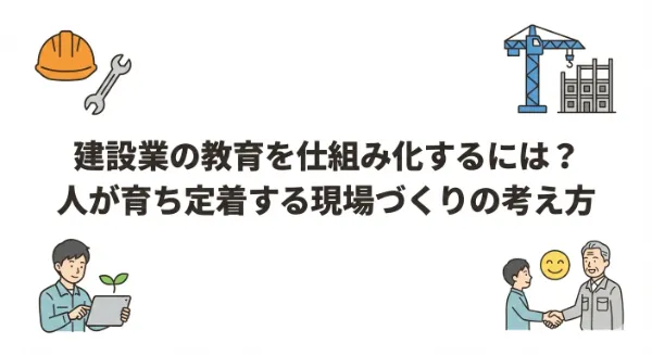 建設業では、「教育が属人化している」「人によって教え方が違う」「若手が育たず定着しない」といった課題を抱える現場が少なくありません。安全や品質を守りながら人材を育てていくためには、教育を個人任せにせず、仕組みとして整えることが重要です。本記事では、建設業で教育の仕組み化が求められる理由から、具体的な進め方、人材定着や現場力に与える影響までを分かりやすく解説します。無理なく続けられる教育体制を考えるヒントをお伝えします。